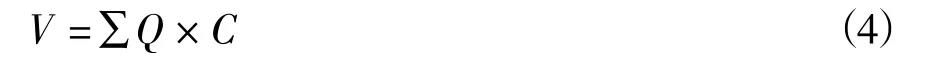 其中,Q为向红树林湿地排放的污染物的量;C为人工处理单位污染物的成本。 - G! m& s( N) K