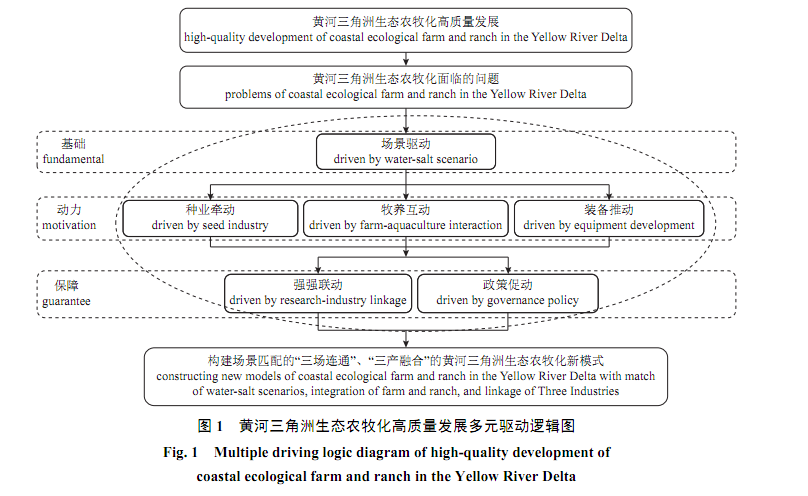 摘 要黄河三角洲自然资源丰富、生态系统独特,其生态保护和高质量发展已上升为国家战略。在资源环境约束趋紧、生态系统退化的严峻形势下,黄河三角洲生态农牧化是实现其高质量发展的重要方式之一。为构建绿色、低碳、循环的黄河三角洲生态农牧化新模式,本研究分析了其高质量发展面临的问题,提出其发展的理念和目标。在此基础上,针对性地提出多元驱动的高质量发展策略与途径,即通过“场景驱动”以优化宏观布局,利用“种业牵动”、“牧养互动”和“装备推动”以完善产业体系,采用“强强联动”以创新协同范式,运用“政策促动”以实现整体升级,构建场景匹配的三场连通、三产融合的黄河三角洲生态农牧化发展新模式,实现机械化、智能化、数字化和体系化的协同发展。研究结果可为推动黄河三角洲生态农牧化高质量发展提供参考。